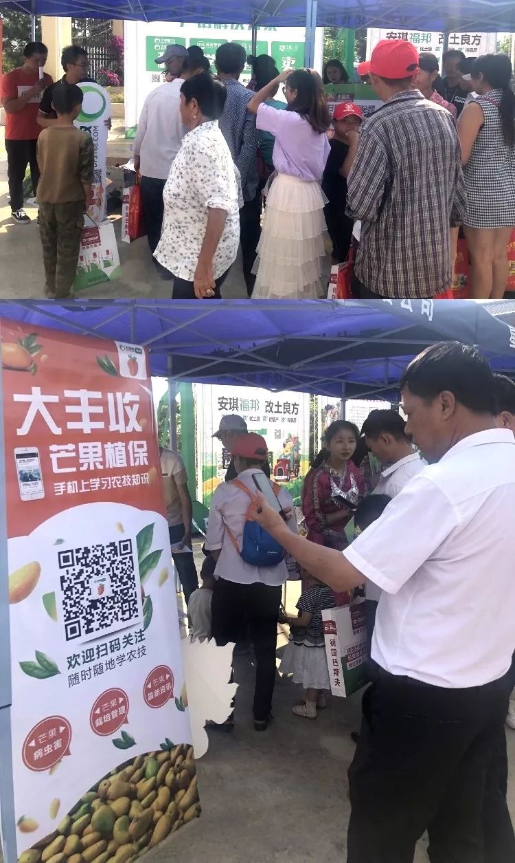 作为本次大会的支持单位, ,,,, ,,大丰收的明星单品——生物有机肥再次获众人瞩目!为助力外地果农优产创收, ,,,, ,,大丰收特殊策划了现场丰菌龙免费赠予运动, ,,,, ,,只要在现场大丰收展示台扫码关注“大丰收芒果植保”公众号, ,,,, ,,即可申请到1kg/包的丰菌龙带回家试用, ,,,, ,,不到半小时的时间就已经送出上千袋丰菌龙。 。。。。。。