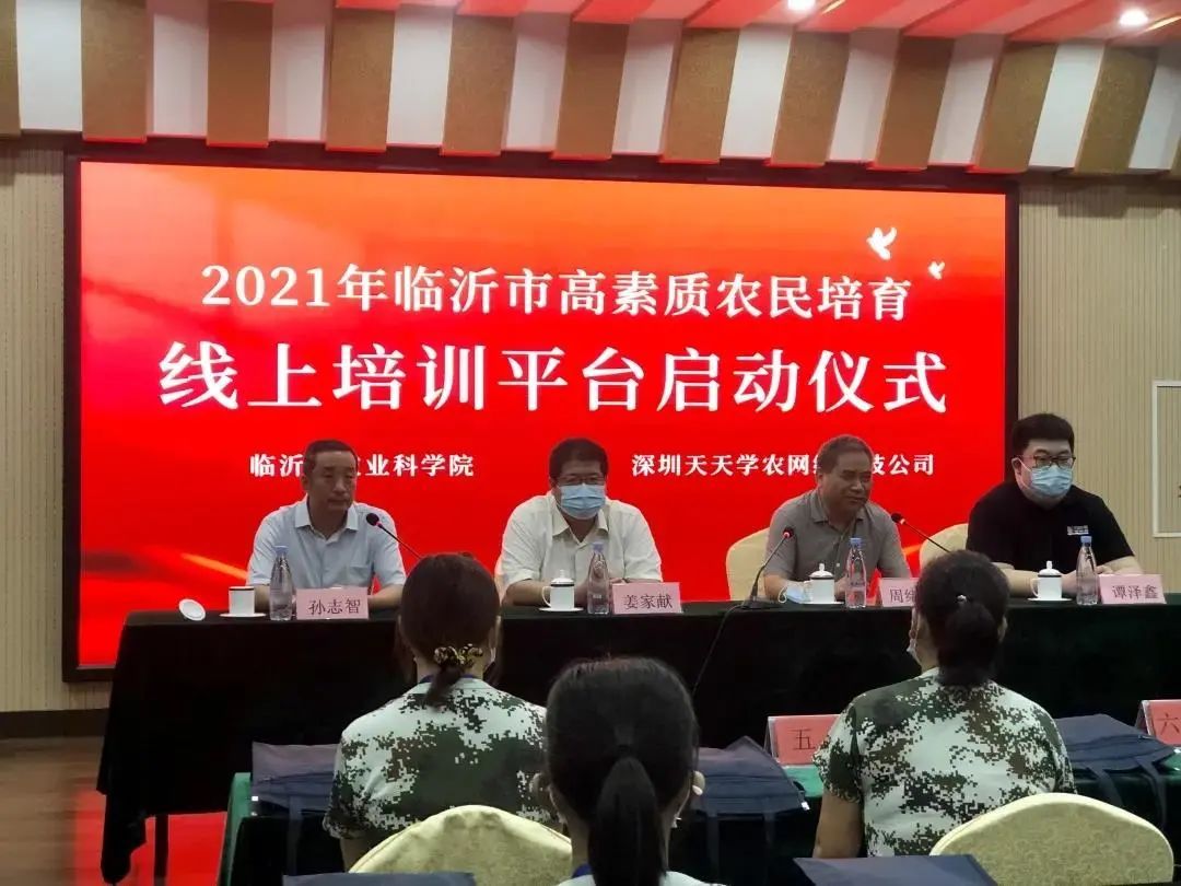 8月4日,,,,,,,2021年临沂市高素质农民培育线上培训平台启动仪式举行。。。。。。。山东省农广校副校长姜家献、临沂市农科院党委书记、院长周绪元、临沂市农科院副院长孙志智、天天学农首创合资人谭泽鑫出席启动仪式。。。。。。。